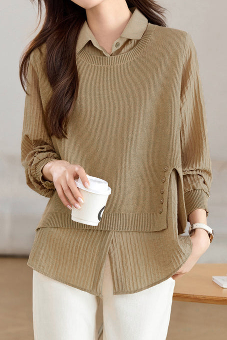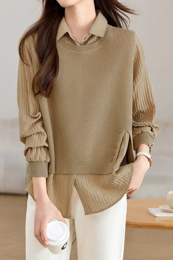 Gespleißtes Fake-Zweiteiler Strickshirt