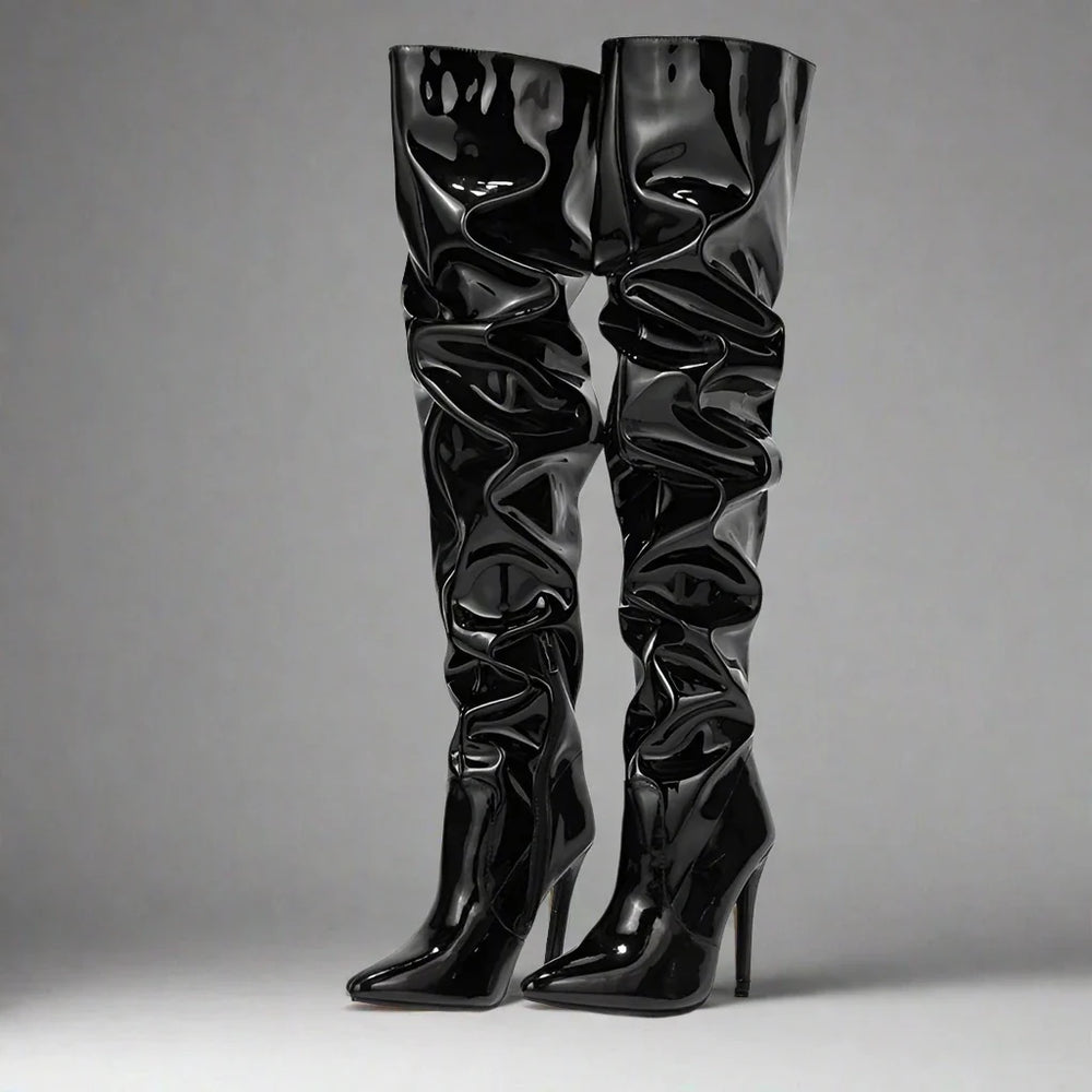Über Knie-Stilettostiefel aus Lackleder für Damen | Radilla