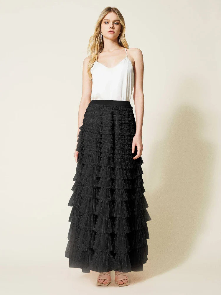 ✨ Delikates Mesh-Design: Der Rock überzeugt mit feinen, kunstvollen Netzdetails, die Ihrem Look einen Hauch von zarter Eleganz verleihen.