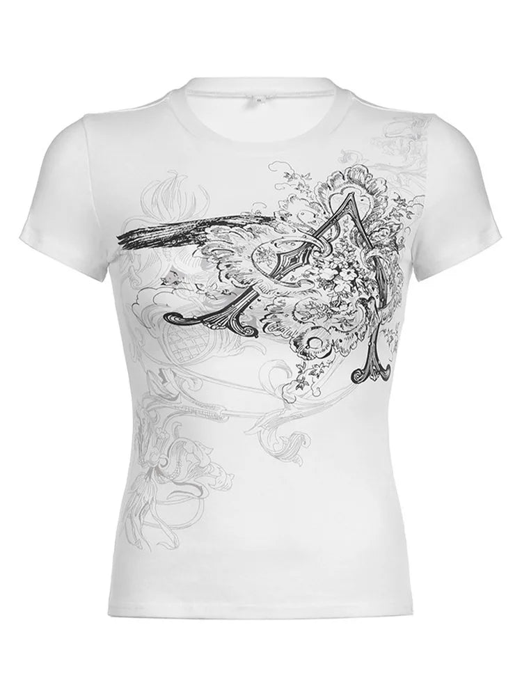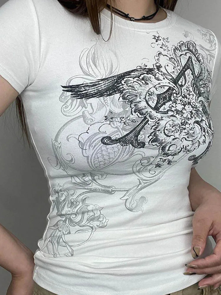 Retro | Top mit kurzen Ärmeln und O-Ausschnitt